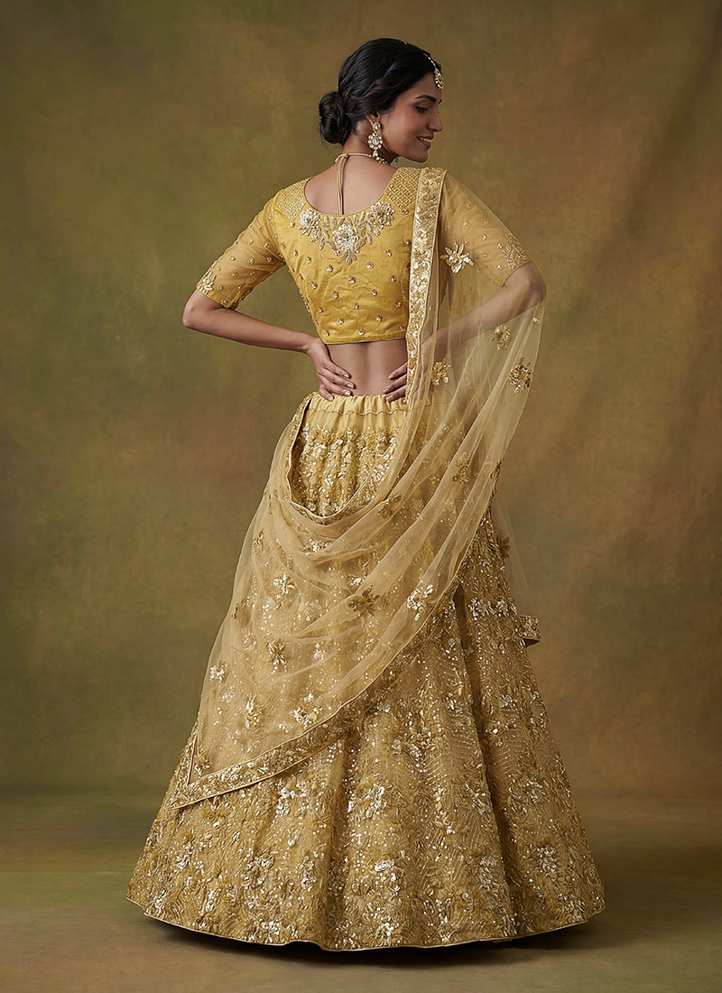 Embroidered Net Lehenga in Yellow