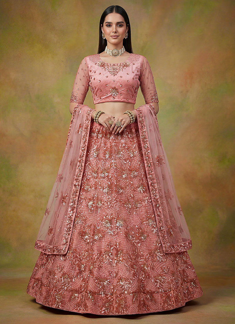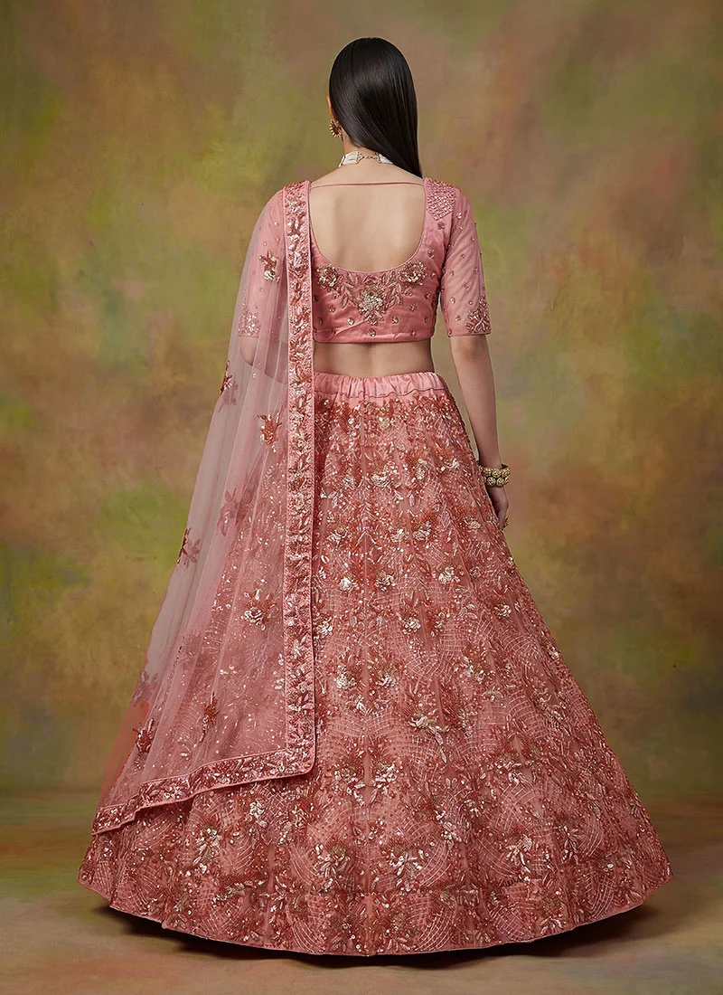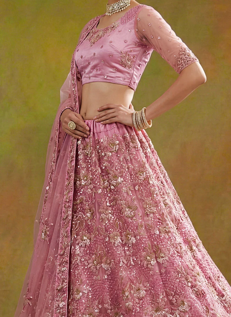 Net Bridal Lehenga in Pink and Majenta with Sequence work