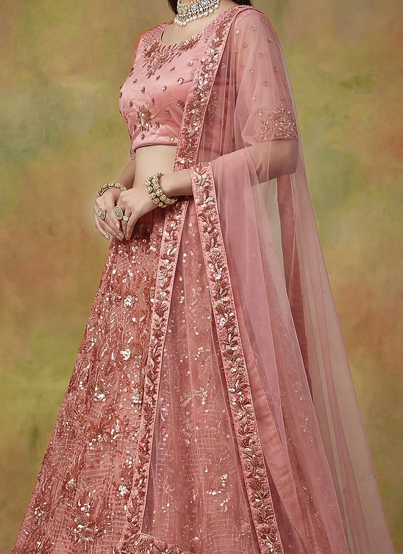 Pink and Majenta color Lehenga in Net fabric with Sequence, Thread work.