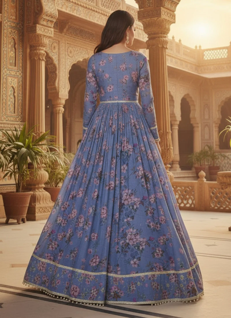 Blue Georgette Printed High Slit Anarkali Suit Festive Wear