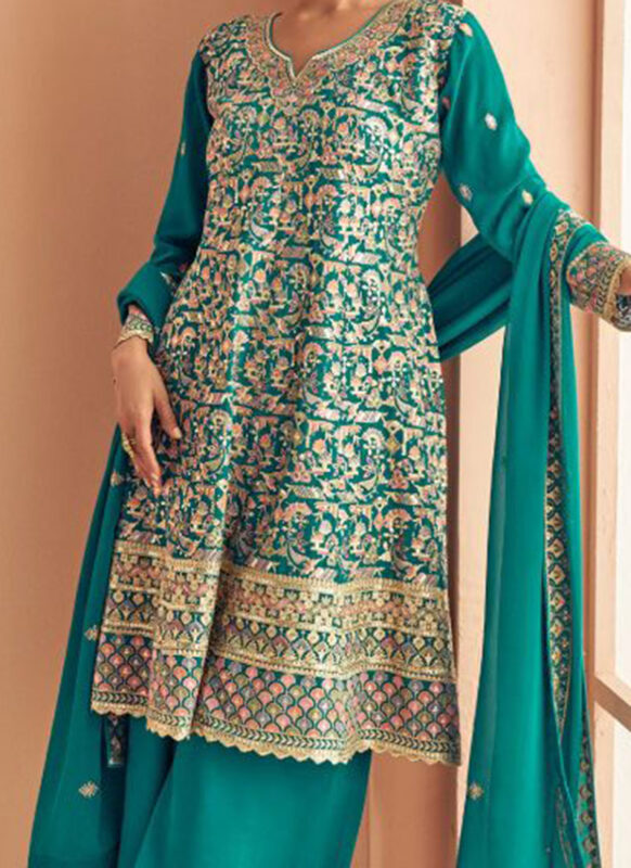This product consists of semistitched top, unsticthed bottom and dupatta fabric. This can be stitched using the custom tailoring options below. To buy semi-stitched fabric, just choose the unstitched option. Designs, colors and patterns on the actual product may slightly vary from designs shown in the image. Images are only representative.