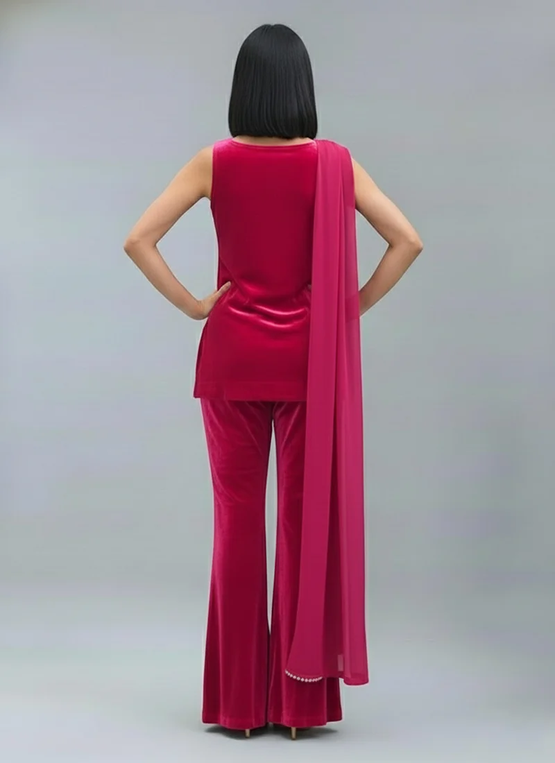Rani Pink Velvet Palazzo Suit Festive Wear
