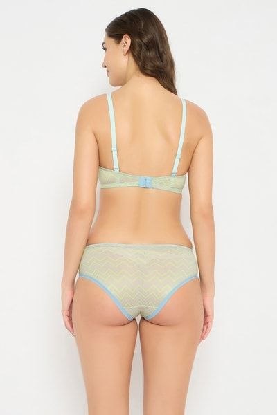 Padded Non-Wired Full Cup Chevron Print T-shirt Bra & Mid-Waist Hipster Panty in Yellow