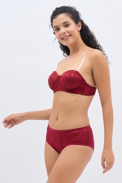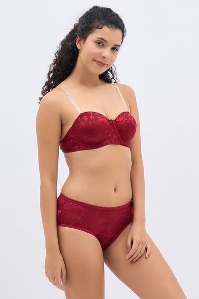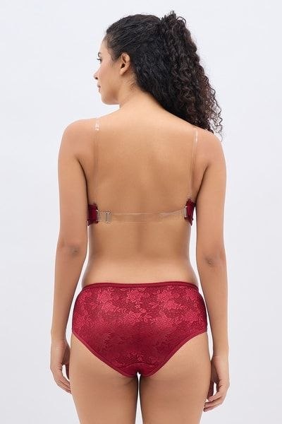 Invisi Padded Wired Full Coverage Strapless Backless Maroon – Lace Bra & Panty Set