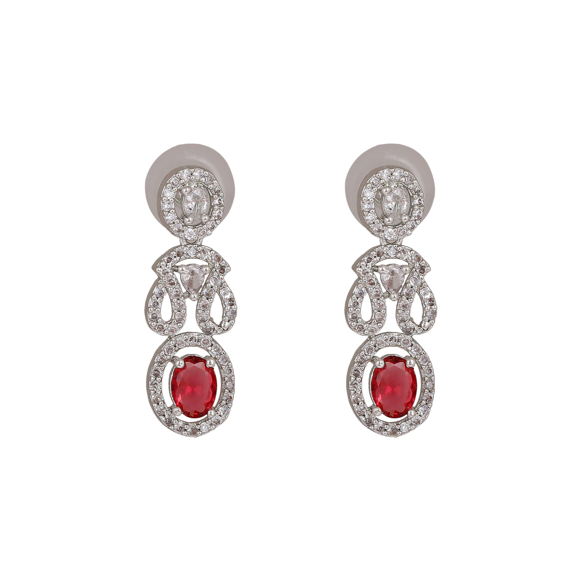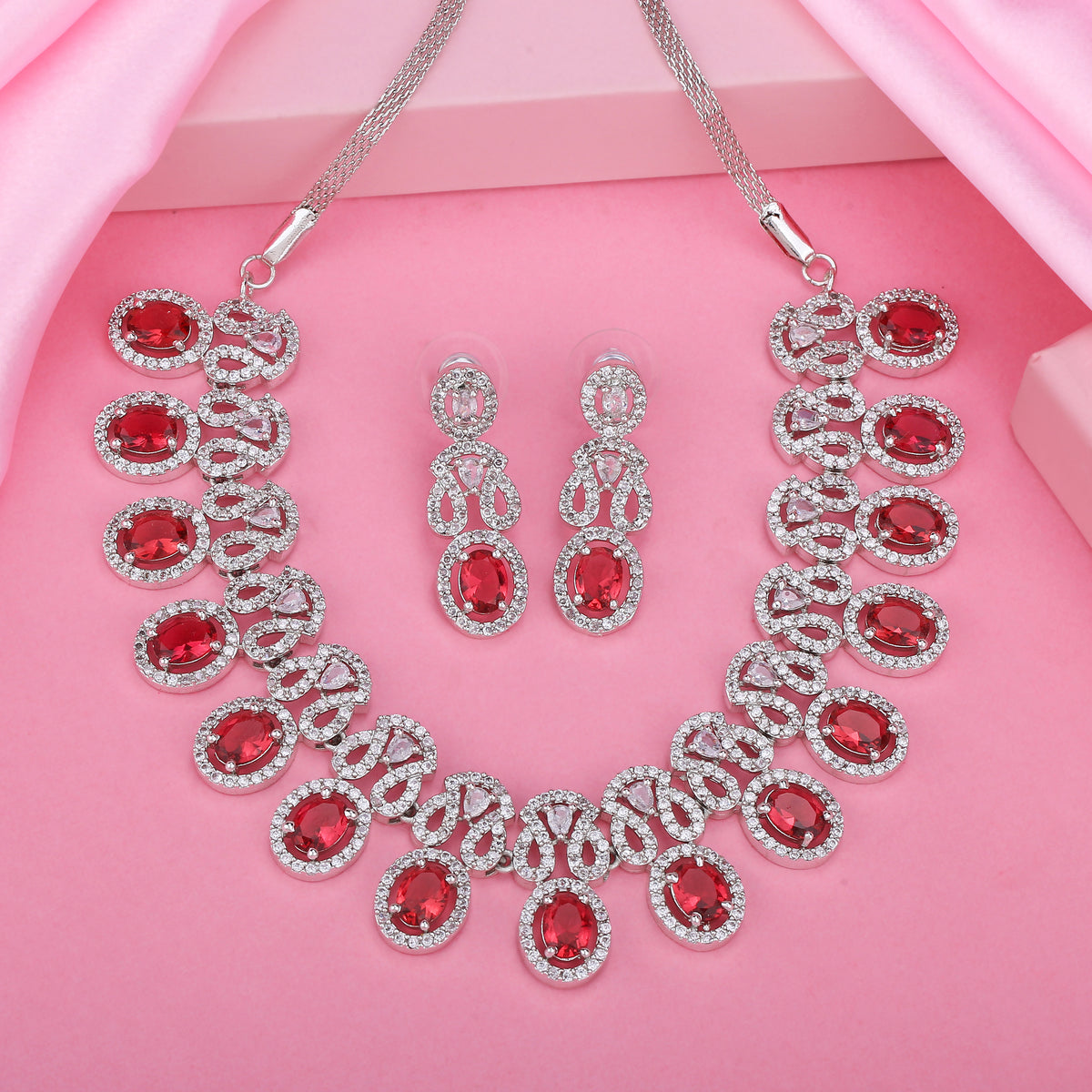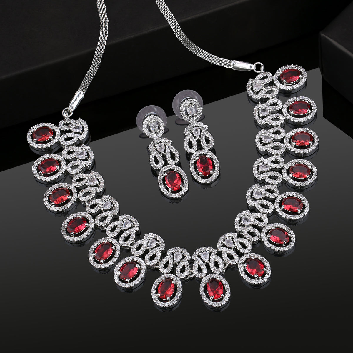 Estele Rhodium Plated CZ Traditional Bridal Choker Set with Pearls & Ruby Crystals for Women